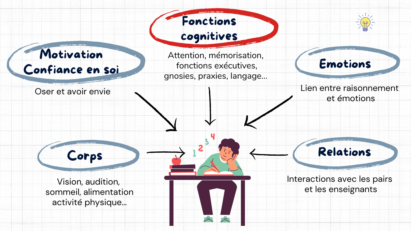 Qu'un enfant rencontre des difficultés scolaires ou qu'il présente un profil atypique, différentes sphères peuvent être affectées :
